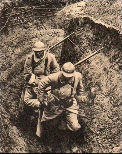 Martyrisés dans leur chair ensanglantée, les blessés n'avaient d'autre idée que de fuir le champ de bataille et d'atteindre quelque poste de secours où un major se pencherait sur leurs blessures. Un camarade a fait un pansement. Tant mieux si le blessé peut marcher. Il ira lentement de trou d'obus en trou d'obus puis d'abri en abri, faisant halte pour échapper aux obus, attendant une accalmie pour franchir une autre étape.